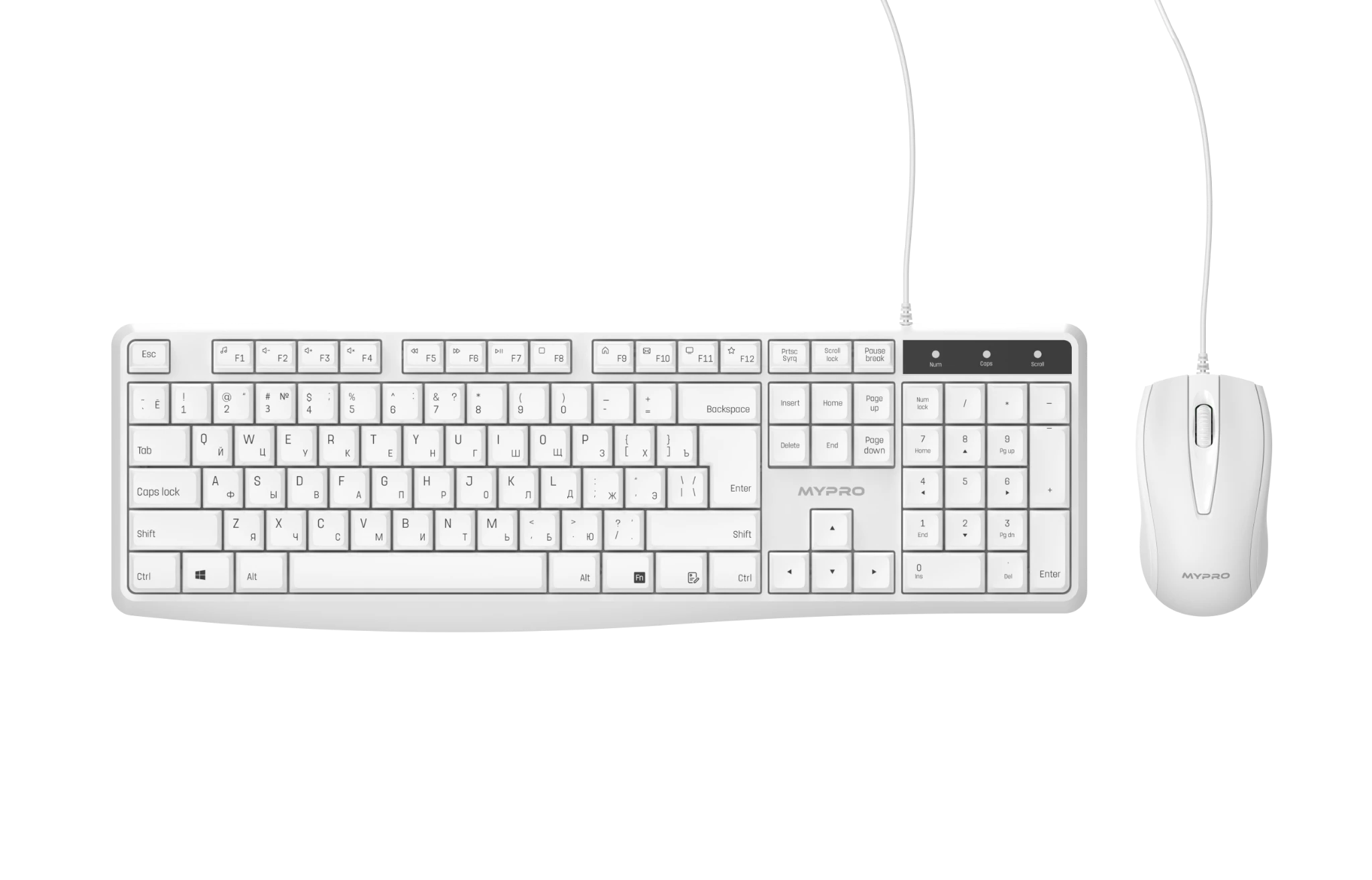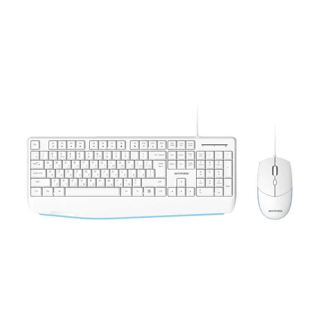 Клавиатура и мышь MYPRO ERGO White - название продукта.
